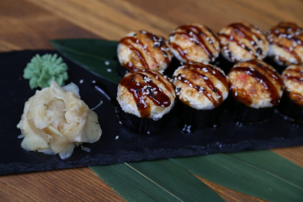 Нори, рис, спайси, креветка, перец болгарский, огурец, масага